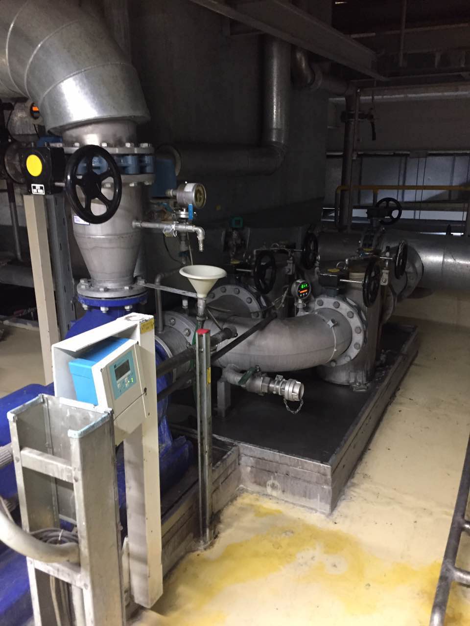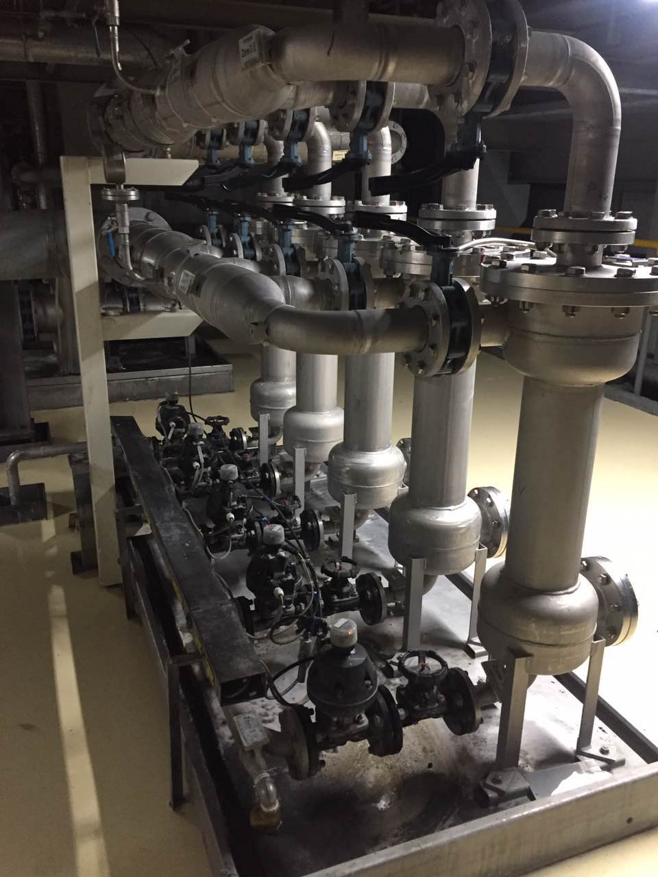 將原有DN150管路斷開,接入三通,并入藍(lán)式過(guò)濾器;